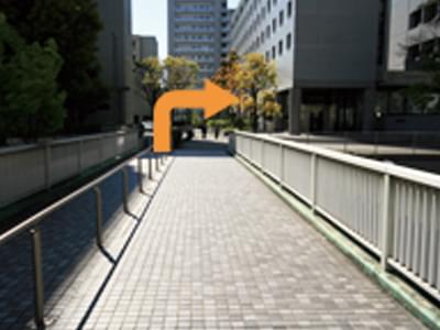 橋を渡り終えたら、りそな千里ビルを右へ曲がります。